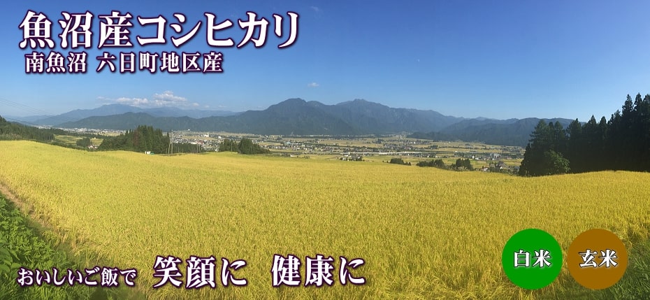 当店では、南魚沼市六日町地区で生産されたコシヒカリを直接仕入れ、「魚沼産コシヒカリ 玄米 100%」で販売しております。